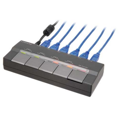「チョイス&シェア USB Hub名人」(CHM-SW4P)はセンチュリーが12月19日に発売する、 2台のPCでUSB機器の共有とPC間データ転送が行なえるUSBハブ。価格はオープン、直販価格は7,980円。USB 2.0対応。対応OSはWindows XP/Vista/7。